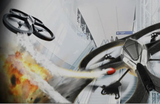 Parrot advert; Screengrab from TIME website, article and image on Occupy movement protesters own use of drone to film police actions in NYC, USA. Occucopter above Foley Square, NYC (Stanley Rogouski).